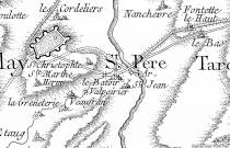 A l’époque gallo romaine et médiévale, en dehors de nombreux gués, certains ponts pouvaient comporter des piles en bois (pieux en chêne) ou en pierres de taille qui supportaient les voûtes et/ou le tablier par un assemblage de poutres, madriers, planches… Ce système permettait de démonter les ponts facilement en cas d’attaque. La date de construction d’un premier pont en pierre de St Père n’est pas connue (XVIIIe ?), mais au Moyen Age il devait avoir des piles en bois et être démontable. Rive gauche, une porte fortifiée intégrée aux murailles du bourg (fortifié au XVIe), contrôlait l’accès au pont. Le 16 août 1578, le conseiller du roi et trésorier général de France, M. de Caumartin, accompagné de maçons et charpentiers de marine, rendit visite aux communes d'Asquins et St Père. Des plaintes concernant la navigabilité de la Cure et la dégradation des ponts causée en partie par le flottage du bois, motivaient son déplacement. Des réparations s 'avéraient nécessaires. Les diverses activités et constructions (flottage du bois depuis XVIe, ponts, moulins, digues…) , les crues et les glaces imposaient un entretien et une organisation méthodique. Il décrit un pont à 5 arches de 33 toises de long (env 60m), 17,5 pieds de large (env 5,80m) Pour mémoire celui d’Asquins est décrit de 90 toises, env 162 m, et 15 pieds de large, env. 4,5 m). Sur la carte Cassini (vers1750), il est mentionné comme pont à trois arches. En 1775, une archive mentionne la reconstruction du pont sur pilotis. Nicolas Saligot entreprit sa réfection moyennant le prix de 9400 livres avec la contribution des voituriers, manouvriers, ouvriers de Saint-Père, Foissy, Fontette et Nanchèvres. Le cadastre de 1823 indique le pont mais pas la grande rue actuelle qui n'est qu'esquissée au crayon car la route de Vezelay passait par le quartier des artisans. Dans les années 19198080, le tablier (avec les parapets en pierre de taille) fut élargi par des trottoirs pour piétons.