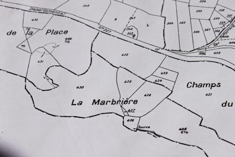 A l'est du hameau de Champrobert, dans un bois se trouve une ancienne carrière de marbre, aujourd'hui noyée. Ce site a sûrement du être exploité dès l'Antiquité (avec une activité métallurgique attestée) ou le Moyen Age. Lors de la reprise de l'exploitation dans les années 1960, une cuve creusée dans le marbre et des traces de bas-fourneaux ont été mis au jour. Le marbre s'est révélé être de mauvaise qualité ce qui entraina la fermeture de l’exploitation dans les années 1980. En 1989, le site a été detruit en partie et noyé par un étang artificiel. On ne sait rien sur la qualité des veines lors des exploitations anciennes mais selon Baudiau, cette carrière "a fournit le marbre nécessaire à la construction de thermes somptueuses". La carrière est bien indiquée sur la carte IGN.