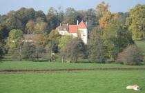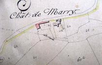 Au sud du bourg, dans la vallée de la Dragne, le château de Mary fut bâti au XVe siècle remanié au XVIIIe, en proximité d'une motte féodale. Baudiau (v.1854) témoigne de l'existence d'une motte, à 300 m du château et près de la rivière, dont on voyait encore bien " une ceinture de fossés de moyenne dimension. C'est là que s'élevait l'antique habitation des sires Mary". Il évoque aussi au même emplacement (anciens marécages asséchés) une ancienne villa romaine dont les objets de fouilles prouveraient que la motte a été construite sur son site.La seigneurie appartenait au XIIe s à la famille Mary, et ce jusqu'au XVIe. Nous ignorons la date de destruction en proximité, de la motte ou maison forte d'origine, mais le château daterait du XV me. La base Mérimée décrit "un donjon du XV e complété par une aile sans doute de la fin du Moyen-âge. En 1768, la construction du château se poursuit coté sud, donnant un ensemble composite". La carte de Cassini (v 1760) mentionne Mary mais pas le château. Le cadastre 1842 révèle un plan complexe du château remanié (parcelle 614 bis) où, entre autres, le donjon est visible comme la longue dépendance. Le domaine est également composé de belles dépendances (granges, écuries, pavillon du régisseur, potager etc.…). La propriété, inscrite aux MH, n'a pas été visité. A noter, en contre bas sur la Dragne, le moulin de Mary, vaste et belle ensemble de moulin à grain et à huile, mais en ruine.