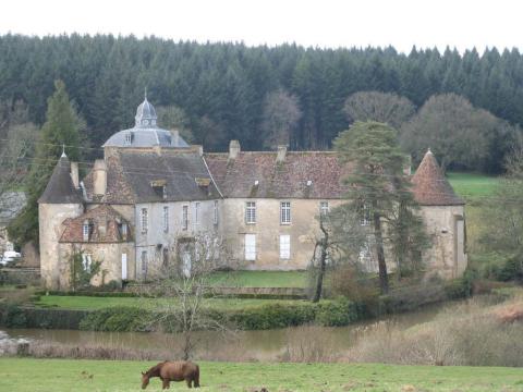 Près du hameau de Vésigneux le château féodal du même nom date du XIVe siècle et fut remanié aux XVIe et XVIIe siècles. Il fut dévasté par les Grandes Compagnies et les Anglais pendant la Guerre de Cent Ans. Au XIIIe siècle Vésigneux était une seconde baronnie mouvante en fief du comté de Chastellux et en arrière-fief du duché du Nivernais, reprit en 1291 par Huguenin de Vésigneux. Le château entra dans la maison de Bourbon au XVIe siècle qui en est toujours propriétaire. Le château fut remanié vers 1565, par les Bourbon. Les tours du château furent découronnées en 1626. L'aile nord fut remaniée également au XVIIe siècle. En 1793, le château fut vandalisé et une aile détériorée au Nord-Est. Cette dernière fut par la suite démolie avec les écuries au XIXe siècle (1884 selon le CeCab). Une chapelle, qui se trouvait selon Baudiau à droite de l'avenue, fut détruite en 1818. la carte Cassini indique bien le chanteau et le cadastre de 1843 en montre le plan. De l'époque médiévale subsistent aujourd'hui le puissant donjon carré et une partie des douves. Le pont-levis a été remplacé par un pont dormant à deux arches. Une chapelle castrale, construite en 1628 par Louis de Montmorillon, avec peintures murales occupait le rez-de-chaussée du donjon. Le château présente un très bel aspect avec un corps de logis de deux niveaux flanqué d'une imposante tour carrée et d'une tour ronde, et une longue aile adjacente elle-même terminée par une tour ronde . Les toitures sont en ardoises, tuiles plates et bardeaux de bois. Le château possède un très beau pigeonnier, un étang, un parc, des écuries, un chenil, des dépendances et une importante ferme voisine. Le pigeonnier possède encore tout son système de poutres et échelles d'accès aux niches. Le château (façades, toitures) est inscrit sur la liste des Monuments Historiques depuis 1971.