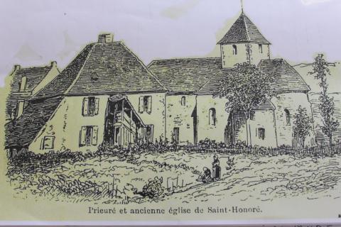D'après Baudiau, la commune tient son nom d'un ancien prieuré fondé en 1106, dédié à Saint-Honoré. L'église paroissiale actuelle, dédiée à Saint-Loup, est l'ancienne chapelle du prieuré, du XIIe siècle, remaniée aux XVIe et XIXe siècles. Elle aurait été construite selon Baudiau "avec les débris des anciens thermes. (…) on remarque au-dessus du portail de l'ouest, une pierre rompue, portant une inscription latine, qui dut appartenir à un édifice romain". Mais d’après l'association locale du Cercle Culturel Diogéne, il y eut probablement un temple païen avant cette première église prieurale, au vu des découvertes archéologiques. En 1570 elle fut incendiée par les Huguenots au sortir du siège d'Autun et reconstruite "dans son style Roman primitif, en 1601" selon la même source. Le cadastre napoléonien en montre le plan, comme la gravure ancienne et la carte Cassini du XVIIIe indique le prieuré par son symbole sur le clocher.. Baudiau, vers 1865, la décrit: "Elle se compose d'une abside, précédée du chœur, de deux chapelles formant transept, et d'une nef sans caractère. (…). La tour, qui s'élève au-dessus du chœur, renferme deux cloches bénites vers 1837." En 1875, suite au développement de la station balnéaire, la nef fut agrandie par l'architecte Andoche Parthiot (Château-Chinon) pour les besoins grandissant de la paroisse. "En 1907, le clocher roman fut démoli et un clocher moderne fut reconstruit à l'opposé du bâtiment" (scs C.C.Diogéne). Le cimetière se trouvait autour de l'église, aujourd'hui place publique, et fut abandonné en 1843. Aujourd'hui on observe sur un plan en croix latine une nef à trois vaisseaux, voûtée en berceau, prolongée d'un chœur en abside, flanquée de deux chapelles et une tour-porche surmontée d'une haut et fine tour carrée avec flèche. Louis Jollivet realisa les faiences du chemin de croix et des fonds baptismaux.