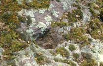 Affleurement granitique avec deux petites cavités passant pour être les empreintes de pas d'âne.