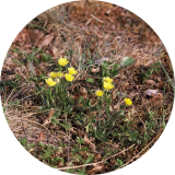 Plante vivace, à souche renflée en bulbe, et à tige dressée, haute de 20 à 50 cm. Les feuilles basales sont plus ou moins densément poilues sur la face supérieure, profondément découpées en 3 segments, celui médian est à 'tige'. Les feuilles caulinaires supérieures sont découpées en segments linéaires en forme de fer de lance. Les fleurs sont jaunes de 2 à 3 cm de diamètre.