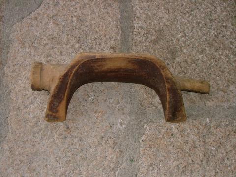 Ce joug simple pour habituer un jeune bovin destiné au trait de charrue, charrette.., a été fait en coupant en deux un joug double
