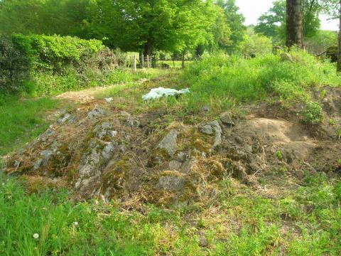 Plateforme granitique en bordure de chemin: il y aurait une empreinte de pas d'âne gravée à la surface.