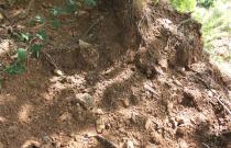 Pres du moulin Chetif, la mémoire locale indique une carrière d’arène de couleur ocre rouge qui semble avoir été bien utilisée par le passé et l'est encore, ponctuellement. la végétation commence à la recouvrir.