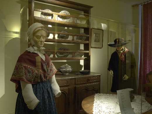Conçue dans un esprit à la fois théâtral et pédagogique, la présentation ménage une approche non seulement historique, artistique et ethnologique, mais aussi sociologique. Ainsi la succession des robes à panier du XVIIIème siècle, robes de mousseline transparents du premier Empire, à crinoline du second, robes à tournure de la IIIème République, robes courtes des années folles, constituent non seulement un catalogue de formes, mais aussi le support d'une réflexion sur l'image de la femme et de la féminité. De même la confrontation des costumes nobles et bourgeois aux vêtements des classes plus modestes permet d'opposer la richesse et la variété des uns à la modestie et à l'uniformité des autres, de mieux saisir leur différence, accentuée par le contraste des fines étoffes de soie et des grosses toiles de chanvre et de laine.