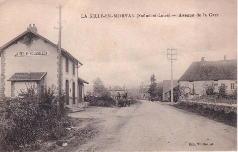 En centre bourg, une gare du tacot remaniée dans les années 1950 est encore visible. Le bâtiment d'accueil des voyageurs et de logement a été transformé en boucherie et le hangar à marchandise surélevé. Le petit toiton pour les toilettes publiques a été conservé sur le pignon. Le Morvan fut traversé par deux lignes du « Tacot » (chemin de fer économique) des années 1900 jusqu’à la fin des années 30 et le développement des autocars: Corbigny-Saulieu et Château-Chinon-Autun. Ces petits trains (3 à 4 wagons) transportaient quotidiennement personnes et marchandises diverses : bétail, volaille, bois, chaux, pierre. De nombreuses gares et haltes ponctuaient les itinéraires.Le trafic voyageurs fut interrompu en 1931, et celui des marchandises en 1936. Les voies furent démontées vers 1939.Sur la ligne Autun/Château-Chinon, la gare de La Celle en Morvan, construite en 1900, desservait aussi la commune voisine de Roussillon en Morvan. Un arrêt facultatif existait à Polroy qui desservait à la mine de houille proche.