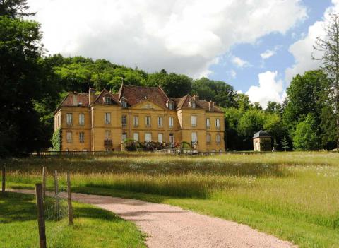 A flanc de colline à l'est du bourg se trouve le château de Bouton du XVIe siècle, rebâti au XIXe. Il fut construit en 1593 par Fiacre de Bouton et fut rebâti en 1832 par le marquis de Montmorillon. Il apparaît sur la carte Cassini (v. 1750). On sait qu'il appartenait en 1670 à Charlotte de Goris, veuve de Philibert de Lagoutte. Au mois de mars 1817, il fit les frais d'une bande de voleurs (voir commentaire).Baudiau décrit l'édifice comme étant un "joli château, à deux pavillons et deux tourelles". Une grande chapelle indépendante fut consacrée en 1739 sous le vocable de St Fiacre. Elle fut remaniée pour en faire des communs à une époque non déterminée, et a retrouvé son aspect par la suite (hautes baies gothiques…).Aujourd'hui on peut observer un très beau château de style classique, sur deux niveaux avec rez-de-jardin, couvert en tuiles de Bourgogne. Il est constitué d'un corps de logis prolongé de deux ailes rythmées par deux pavillons et de deux tourelles sur la façade arrière, le tout avec une très belle terrasse "panoramique" sur Autun. Le château comporte un grand parc, une chapelle, une bellevédère, une très belle "aumônerie", et un ensemble de trois grands bâtiments composé de très belles écuries, d'un corps de ferme avec grange, étable, habitat, et d'une grande maison d'habitation. Ce dernier ensemble- dépendances, a été réhabilité en chambres d'hôtes et gîte.