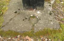 Croix en bois verni sur un socle en granite. Un creux a été fait dans le socle : est-ce le pas de St Martin ou le réceptacle où les gens déposaient des pièces.