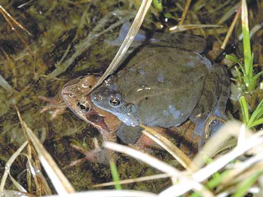 Biologie-Habitat : Terrestre et plutôt forestière. On peut trouver des pontes dans les ornières inondées, les petites mares, les étangs et le bord des cours d'eau encore noyés. La Grenouille rousse est la première à se reproduire et des pontes sous la neige ou dans la glace des prairies humides de février sont fréquentes.