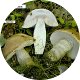 Pied : 3-2 x 10-20 cm, à base courbe, blanchâtre, avec de fines méchules brunâtres, denses, formant une sorte de faux réseau.