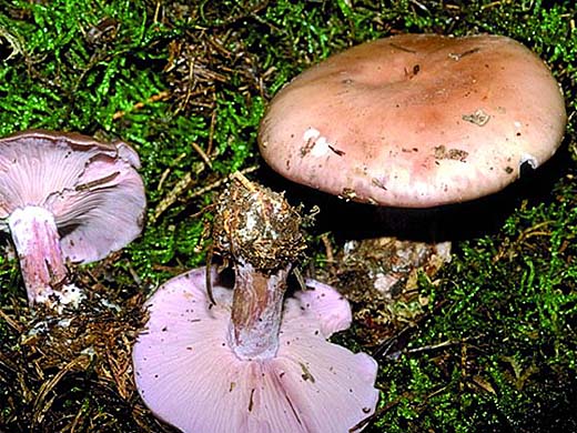 Lames : ,lilas vif se décolorant en rose pâle, facile à séparer du chapeau.