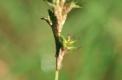 Plante vivace, grêle et à rhizome. La tige est longue de 25 à 50 cm, presque filiforme, triangulaire, rude au sommet et penchée à maturité. Les feuilles sont longues et étroites, planes, molles et rudes sur les bords. L'inflorescence est ovale-allongée, blanchâtre puis jaune paille, composée de 5-8 petits épis rapprochés, argentés et en forme de fer de lance ; les fleurs femelles sont situées au sommet.