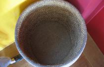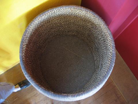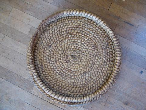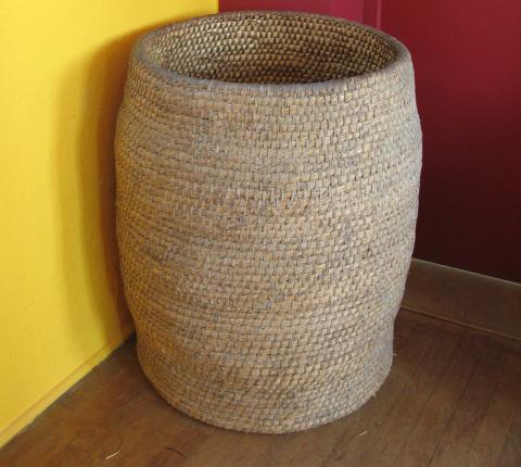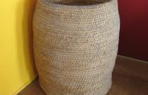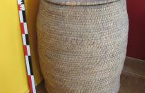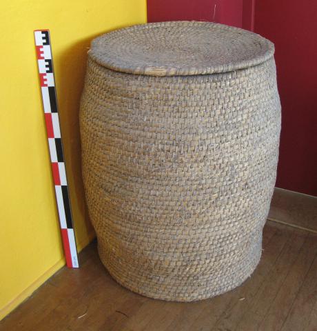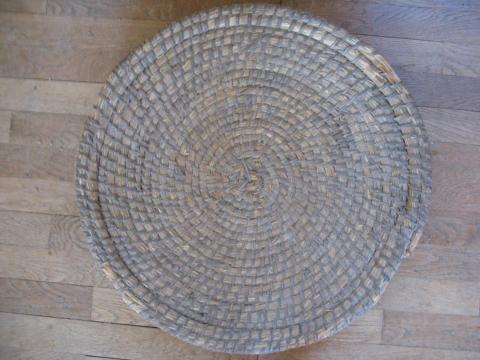Ce type de grande corbeille servait pour entreposer le grain. certaines corbeilles à grain, dans le,grenier de la ferme, pouvaient avoir plus d'1m30 de diamètre. Il était traditionnellement fait par les hommes à la veillée surtout en hiver, avec des cordons (ou boudins) de paille de seigle (calibrés par un anneau) liés ou cousus avec des lamelles préparées d’écorce de ronce.
