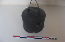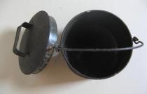 Cette gamelle en fer blanc avec son couvercle apportée sur le lieu de travail,aux champs ou en forêt contenait le repas du midi. Selon une mémoire locale, lorsqu'il allait travailler dans les champs, il partait à 9h (après le soin aux bêtes et autres ) pour ne pas revenir avant 16h. Souvent le midi, la femme, un enfant ou le grand-père se chargeait d'apporter à manger au champs.