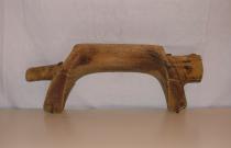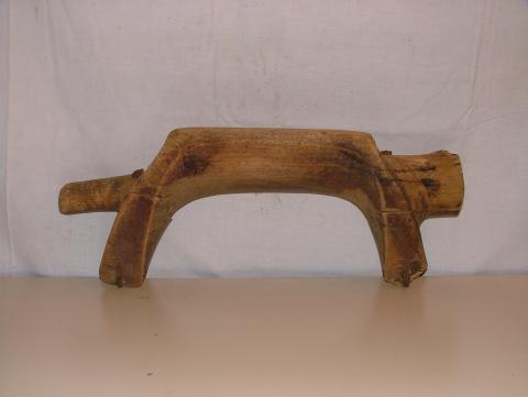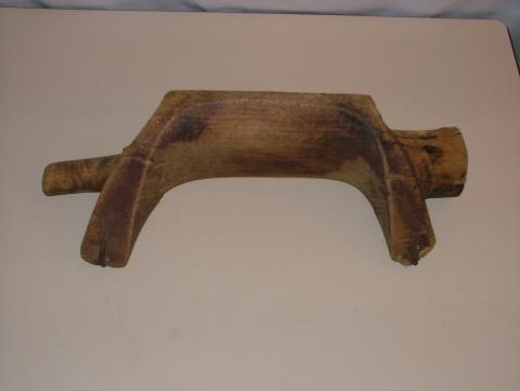 D'un un joug double coupé, ce joug simple devait servir à habituer un jeune bœuf ou vache pour un futur attelage.