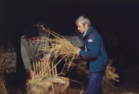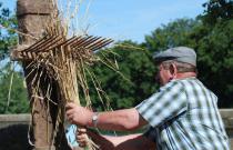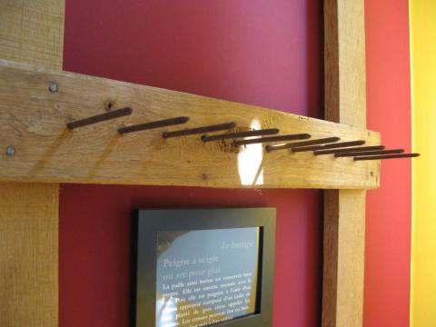 Ce matériel rudimentaire et fait localement, se trouvait généralement dans la grange pour ébarber les javelles de glui. Après avoir battu les bottes de seigle (sur un « âne » en bois) afin de retirer tous les grains pour ne pas attirer les rongeurs dans la future toiture en chaume de seigle, on « peignait » la paille de seigle dite glui pour retirer impuretés et enveloppes sur un râteau spécial (sré) fixé au mur ou sur un billot dans la grange. Ce râteau possède 10 dents en fer, mais il en existait avec des dents en bois également.